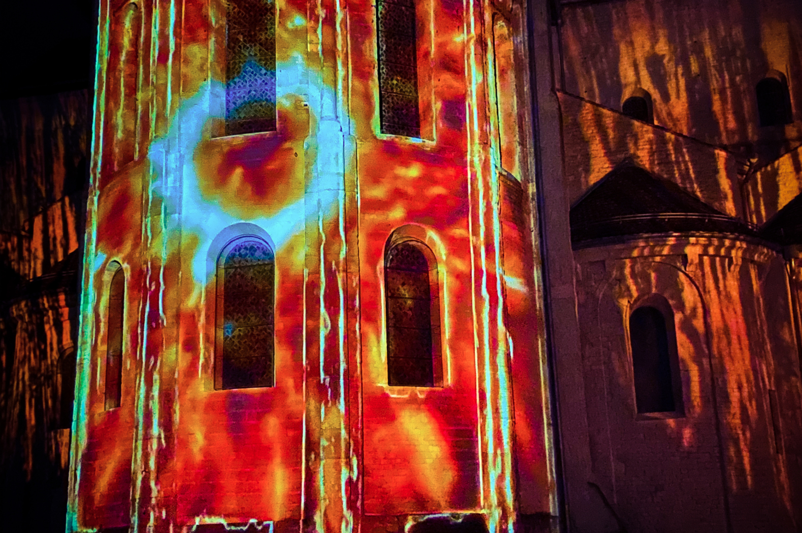 An incredible architectural mapping on the theme of ice and fire to illuminate the Abbey of Payerne.